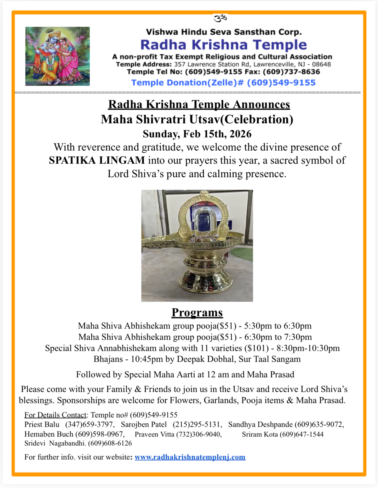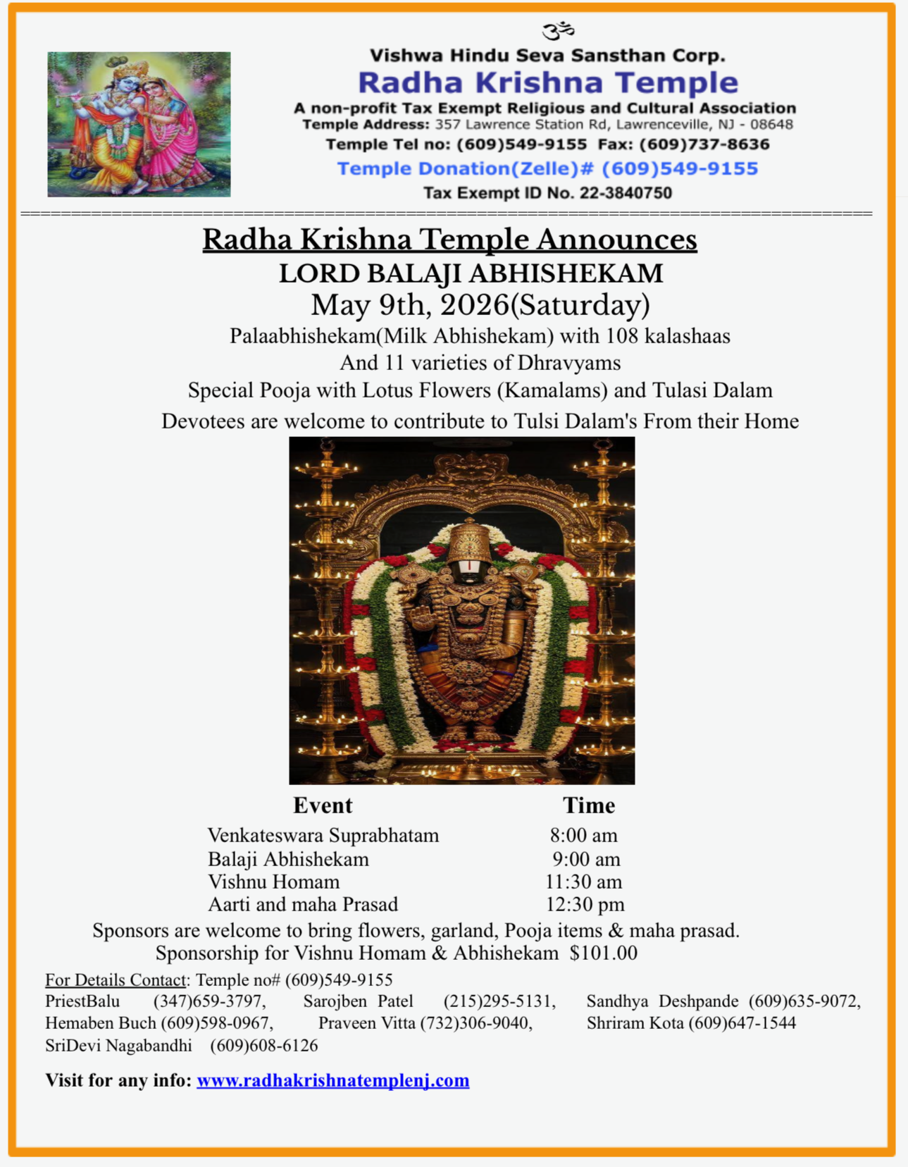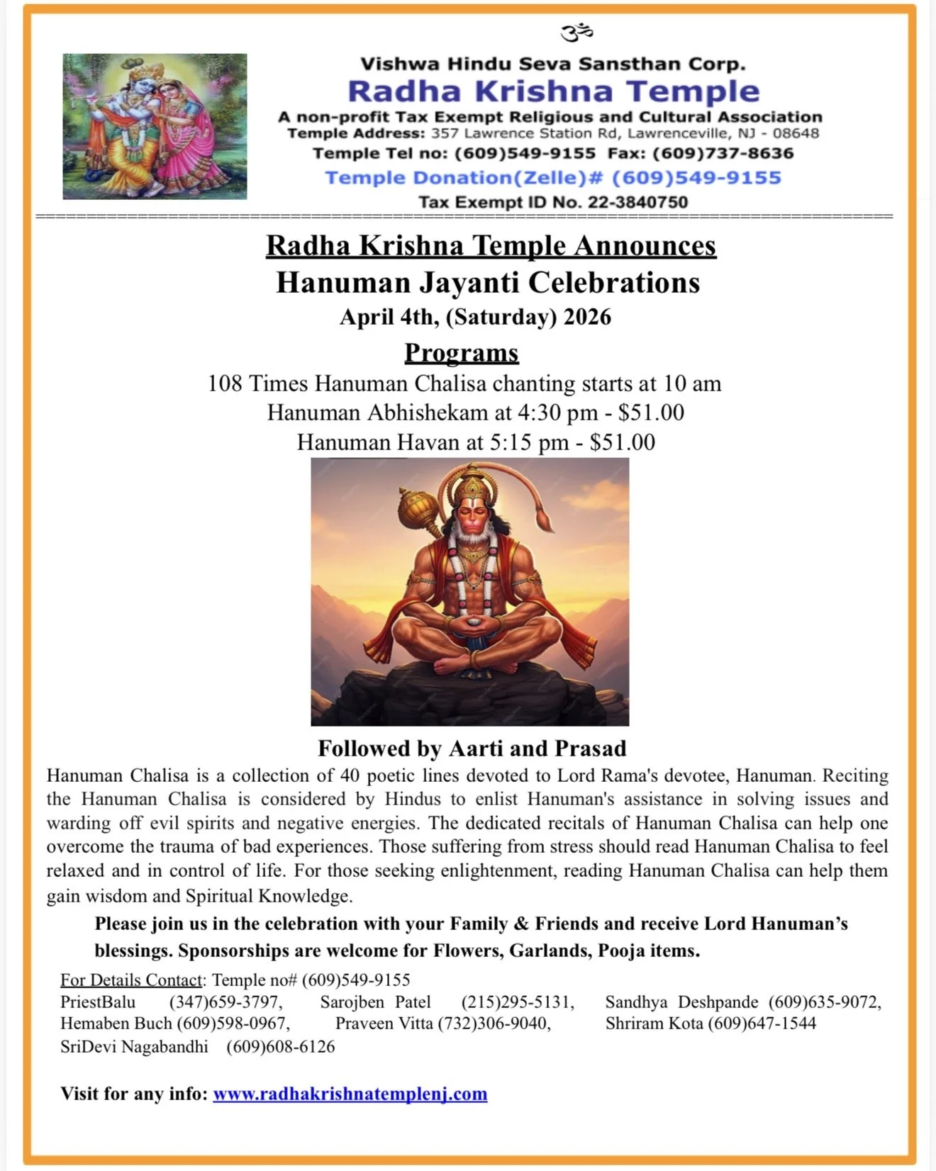 To learn more about our services, call us at (609) 549-9155 or Priest Balanjaneyulu Kommuru at (347) 659-3797.